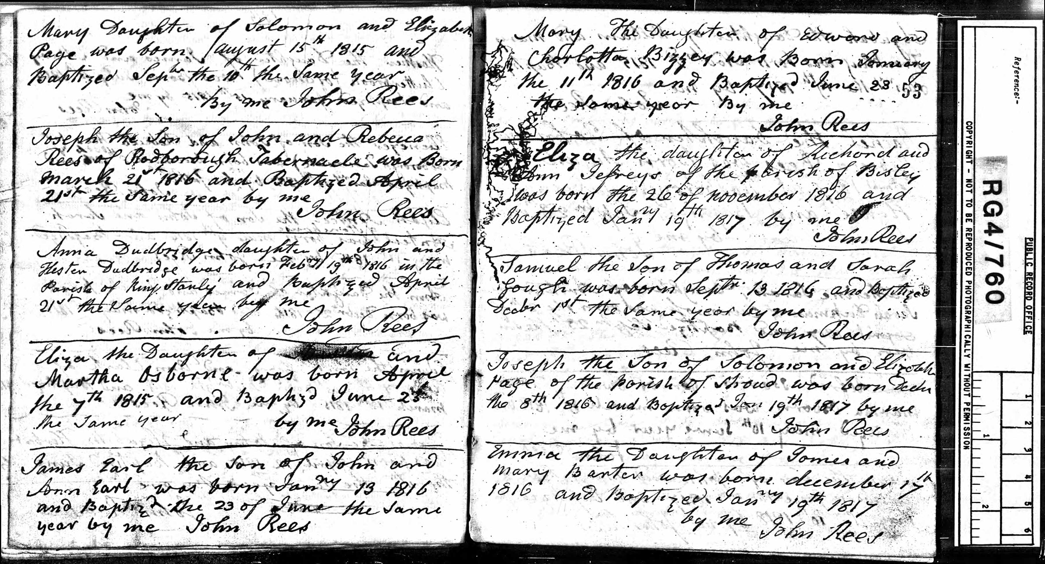 Birth and Baptism of Anna Dudbridge: Father John Dudbridge, mother Hester