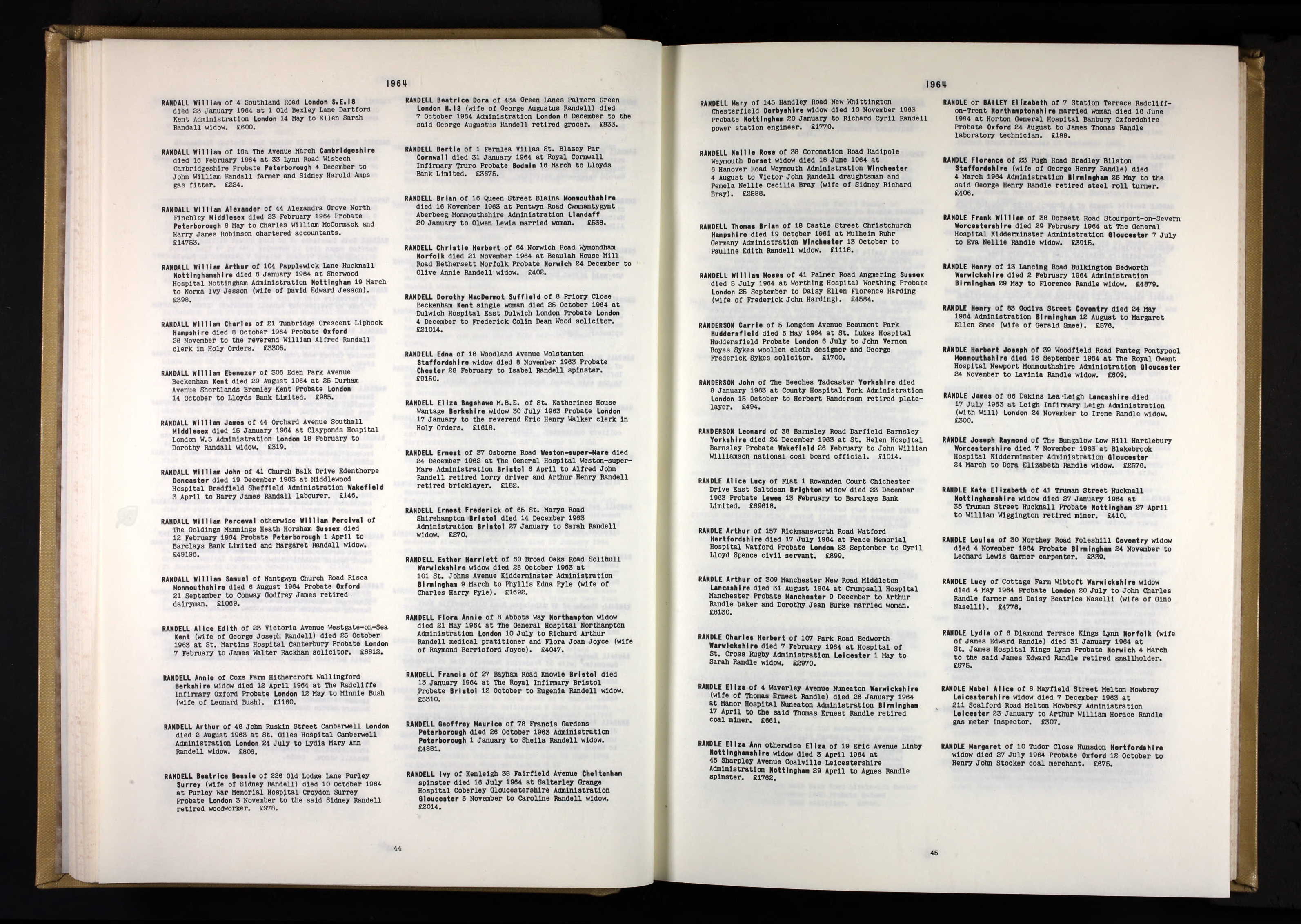 Death and probate for Beatrice Bessie Russell; Croydon, ProbateLondon 3 November 1964