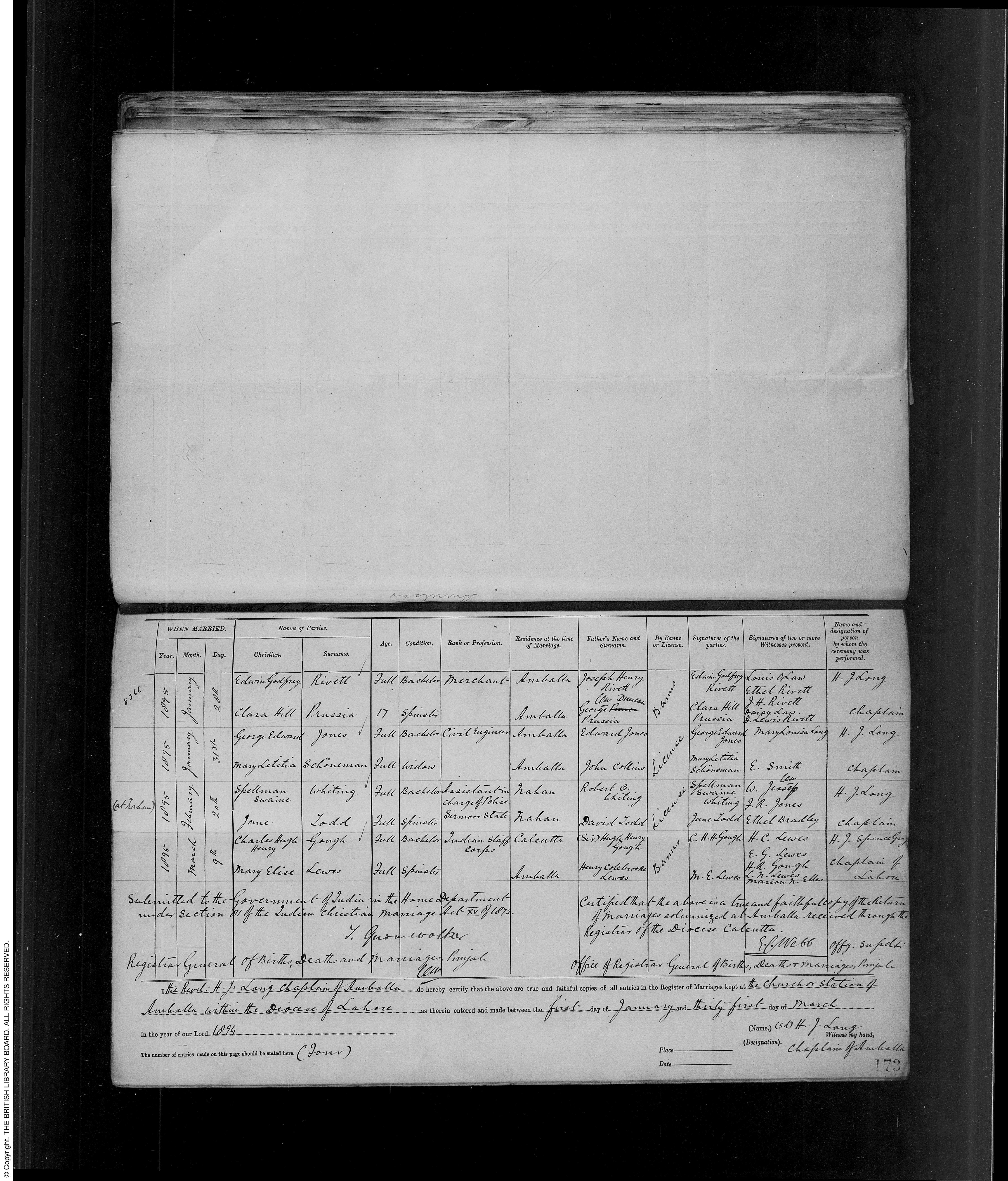 Marriage of Clare Hill Prussia and Edwin Gordon Rivett; Father "Lew Duncan George Prussia"; FHL Film 512352