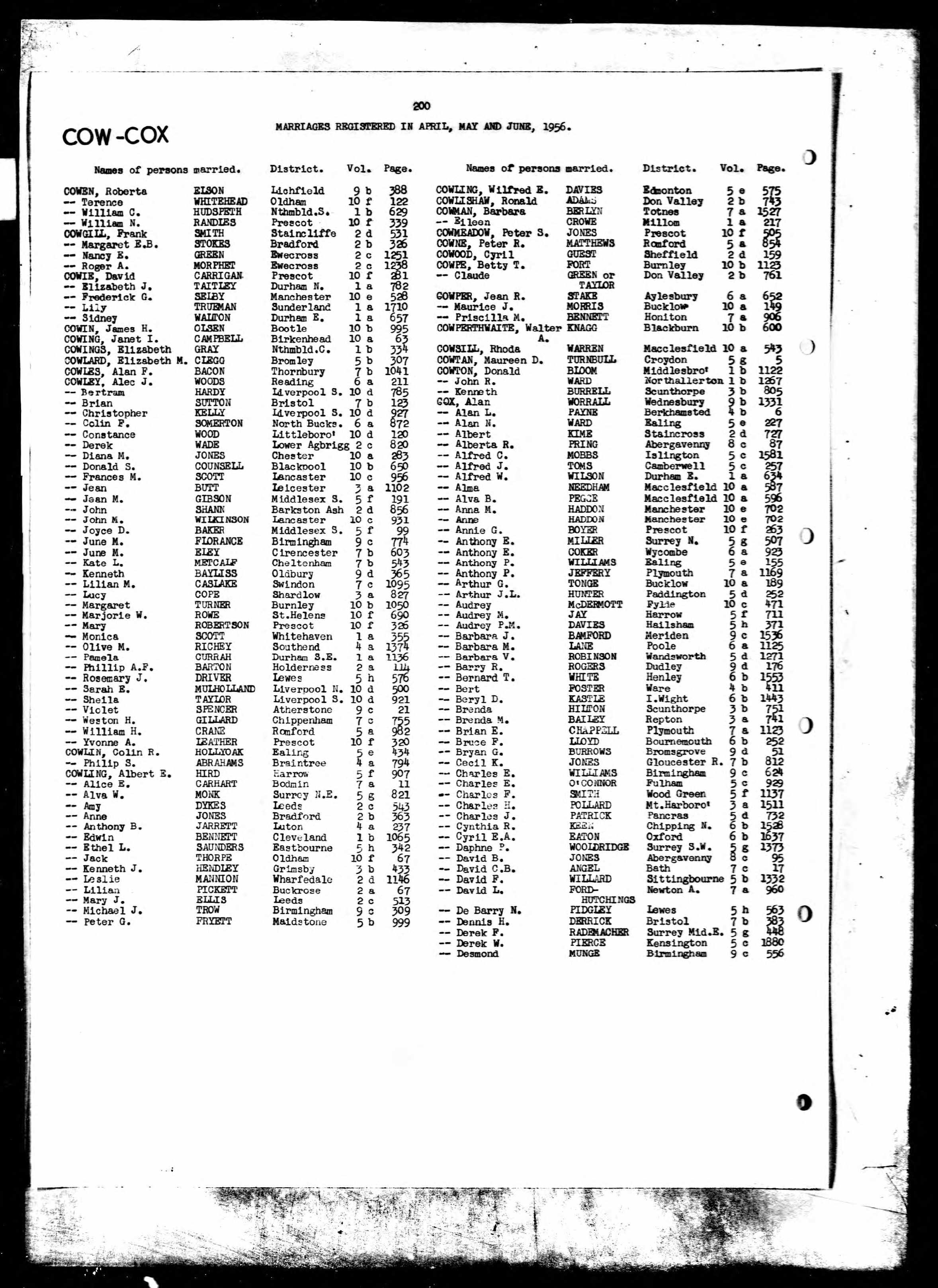 Marriage of Derek Wallace-Cox and Violet J L Pierce 1956