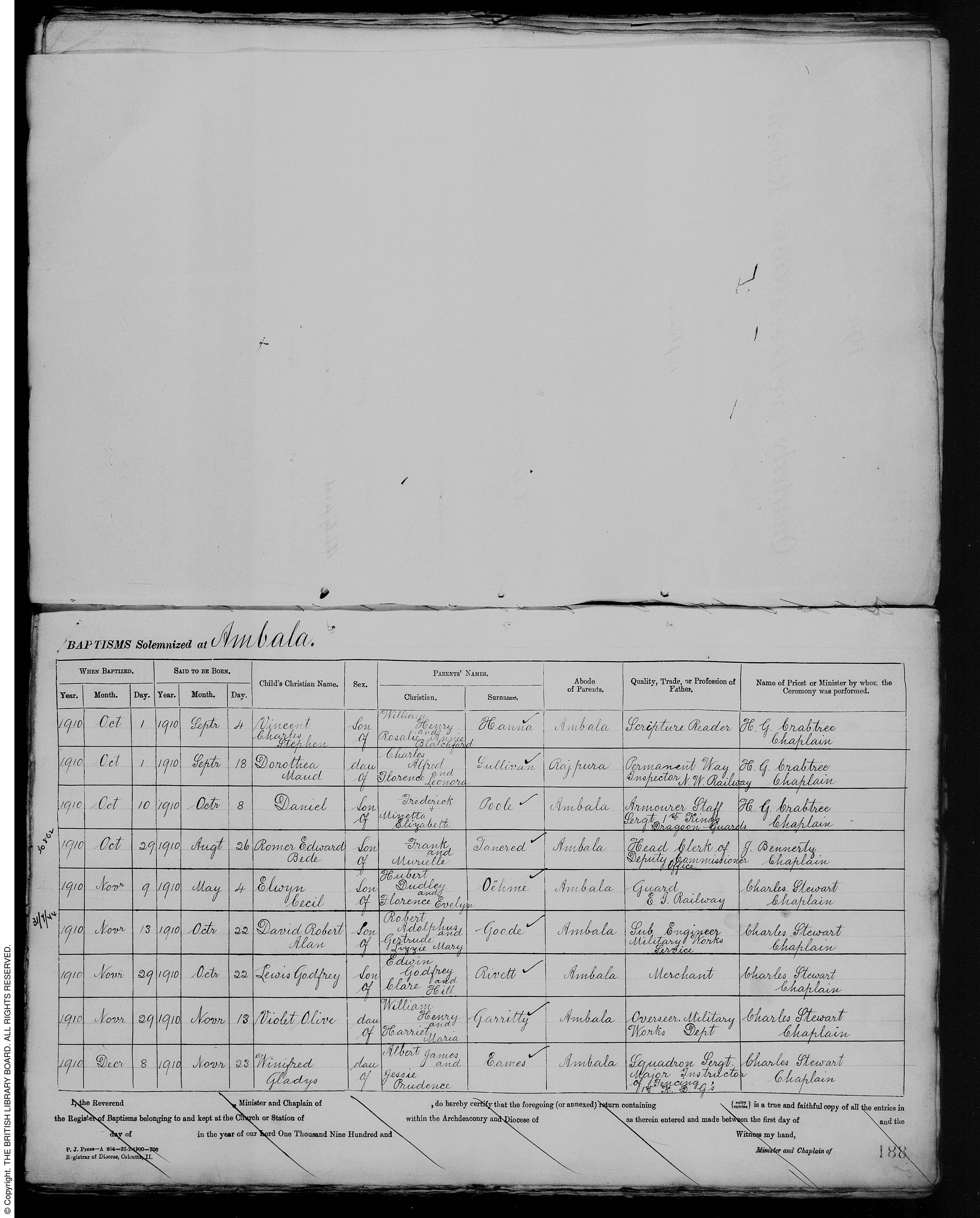 Birth and baptism of Lewis Godfrey Rivett; father Edwein Godfrey Rivett; Archive N-1-368, Folio 188