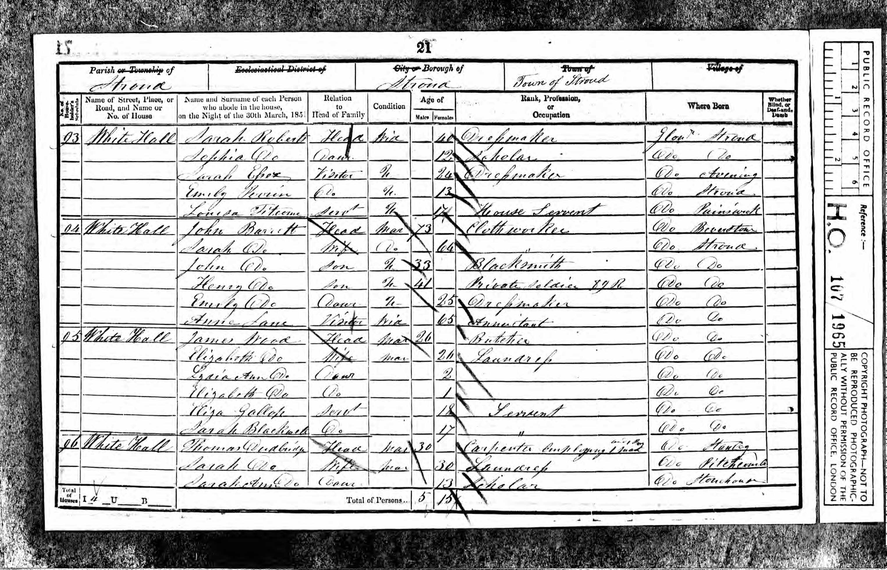 1851 Census - Sarah Twining (Laundress), with husband Thomas, family and others