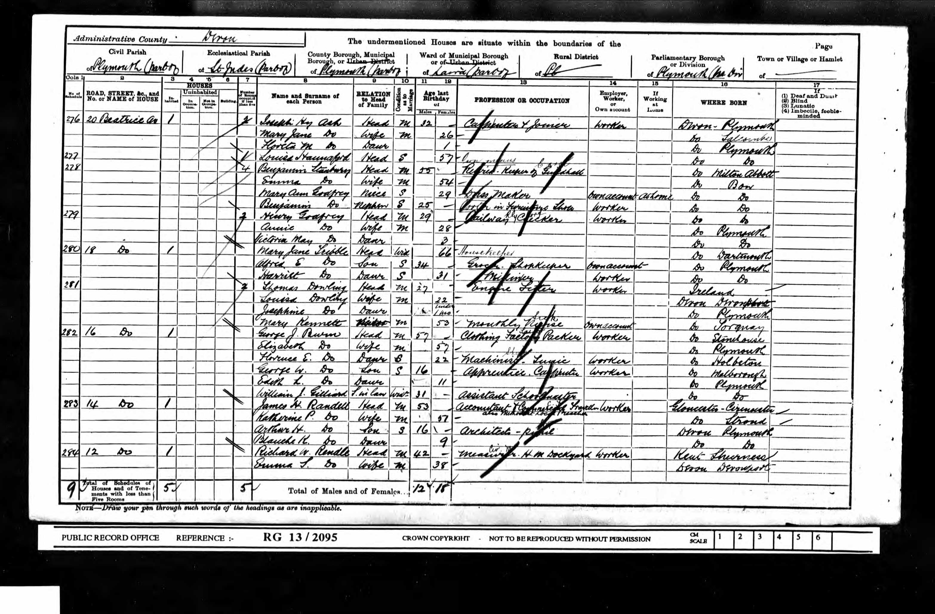 1901 Census - Blanche Katherine Randell, father James, mother Katherine, and brother Arthur