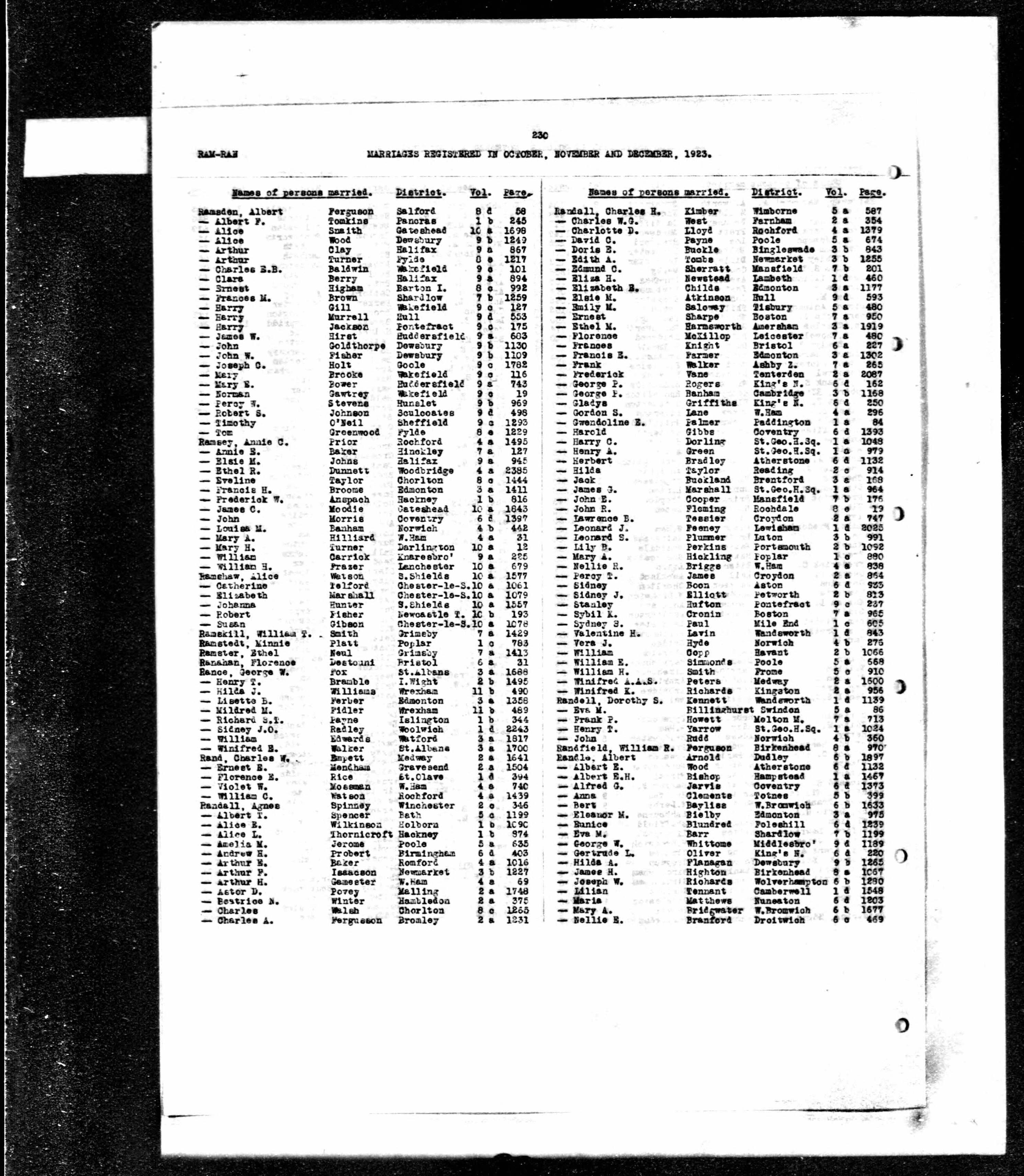 Marriage of Dorothy Sarah Randell and Arthur G Kennett: Wandsworth; Volume 1d page 1139