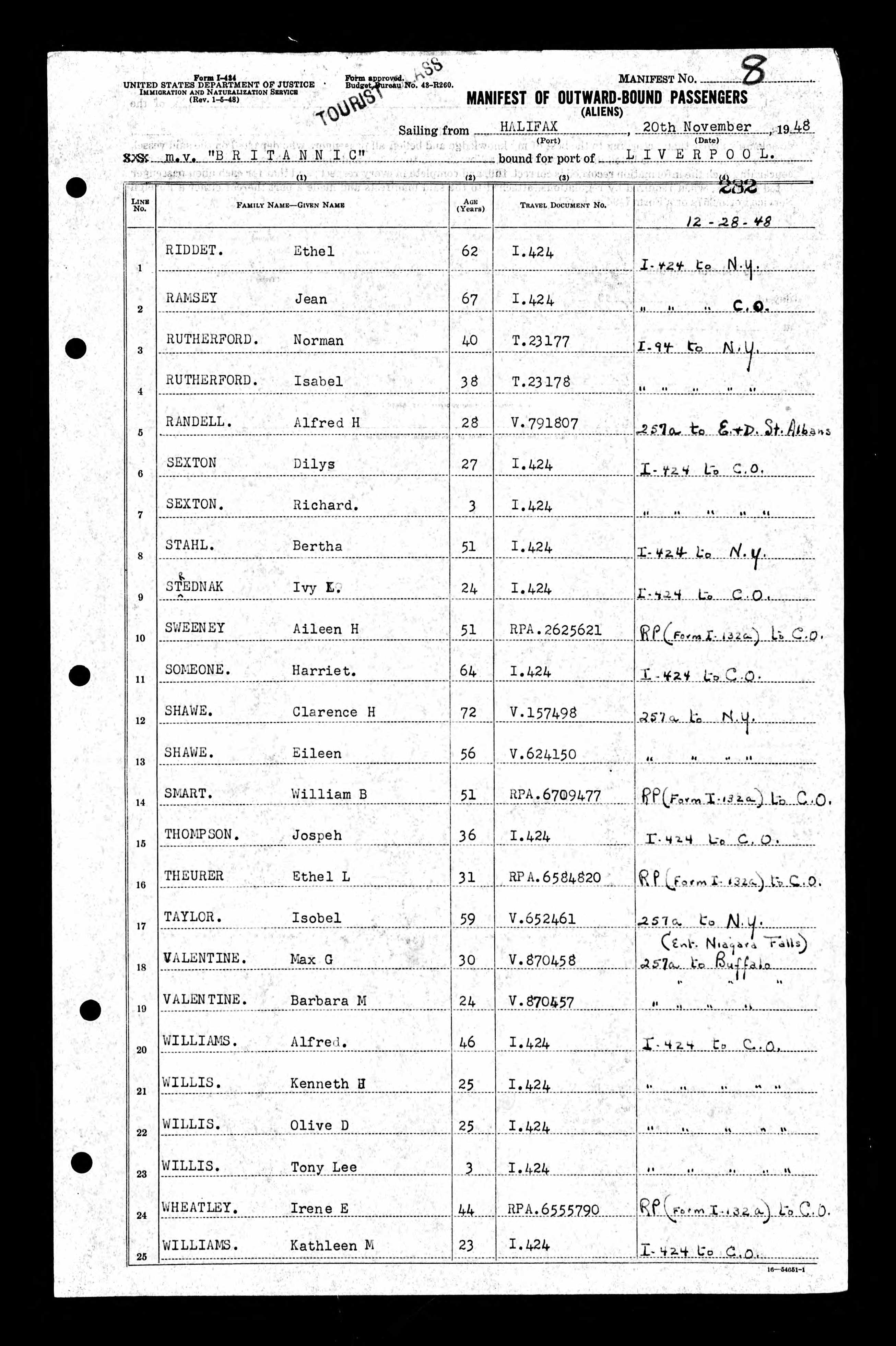 Alfred Hollis Randell from Halifax to Liverpool on the MV Britannic