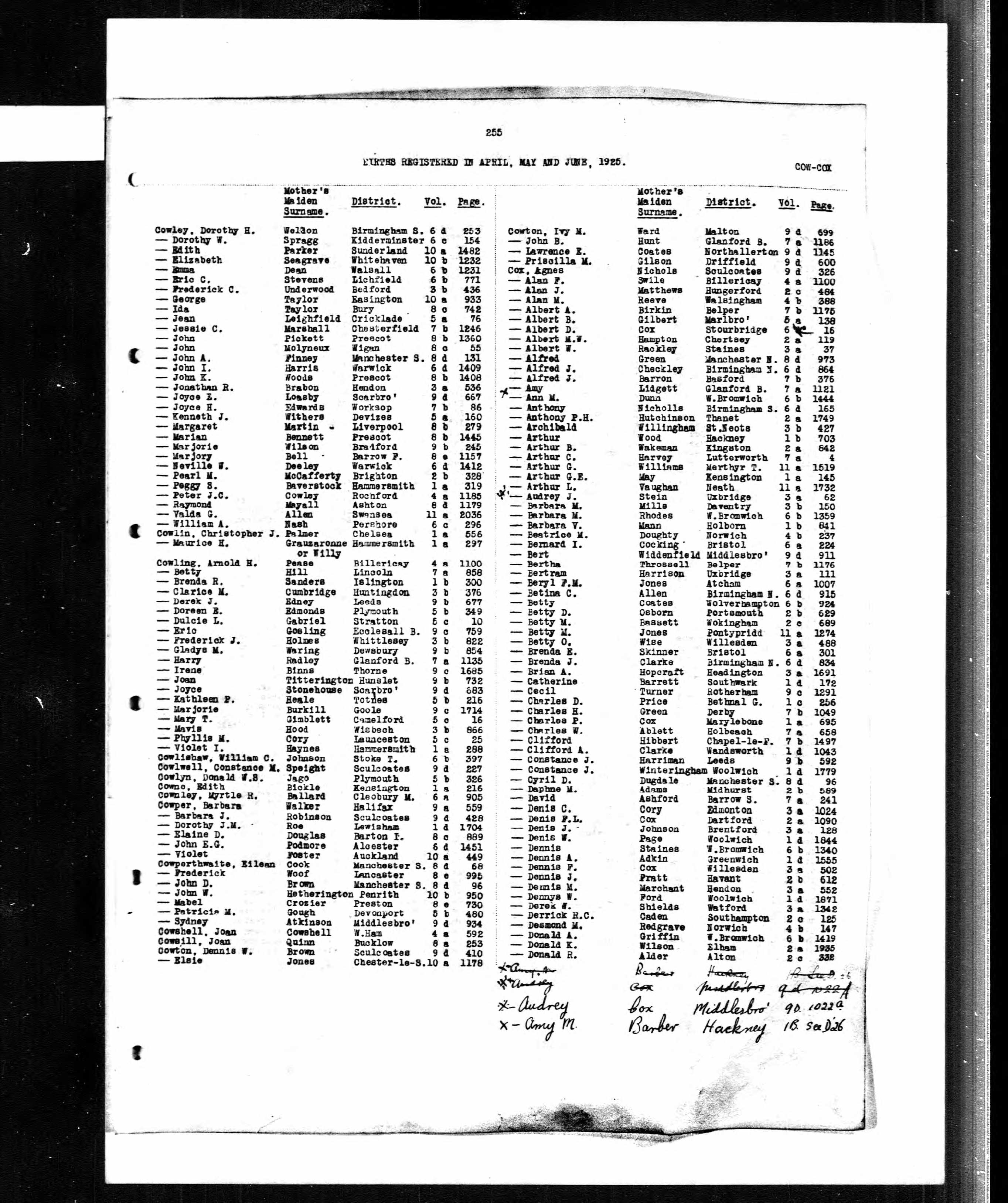 Birth of Derek Wallace-Cox: Watford, Herts.; Mother Shields; Volume 3a, Page 1342