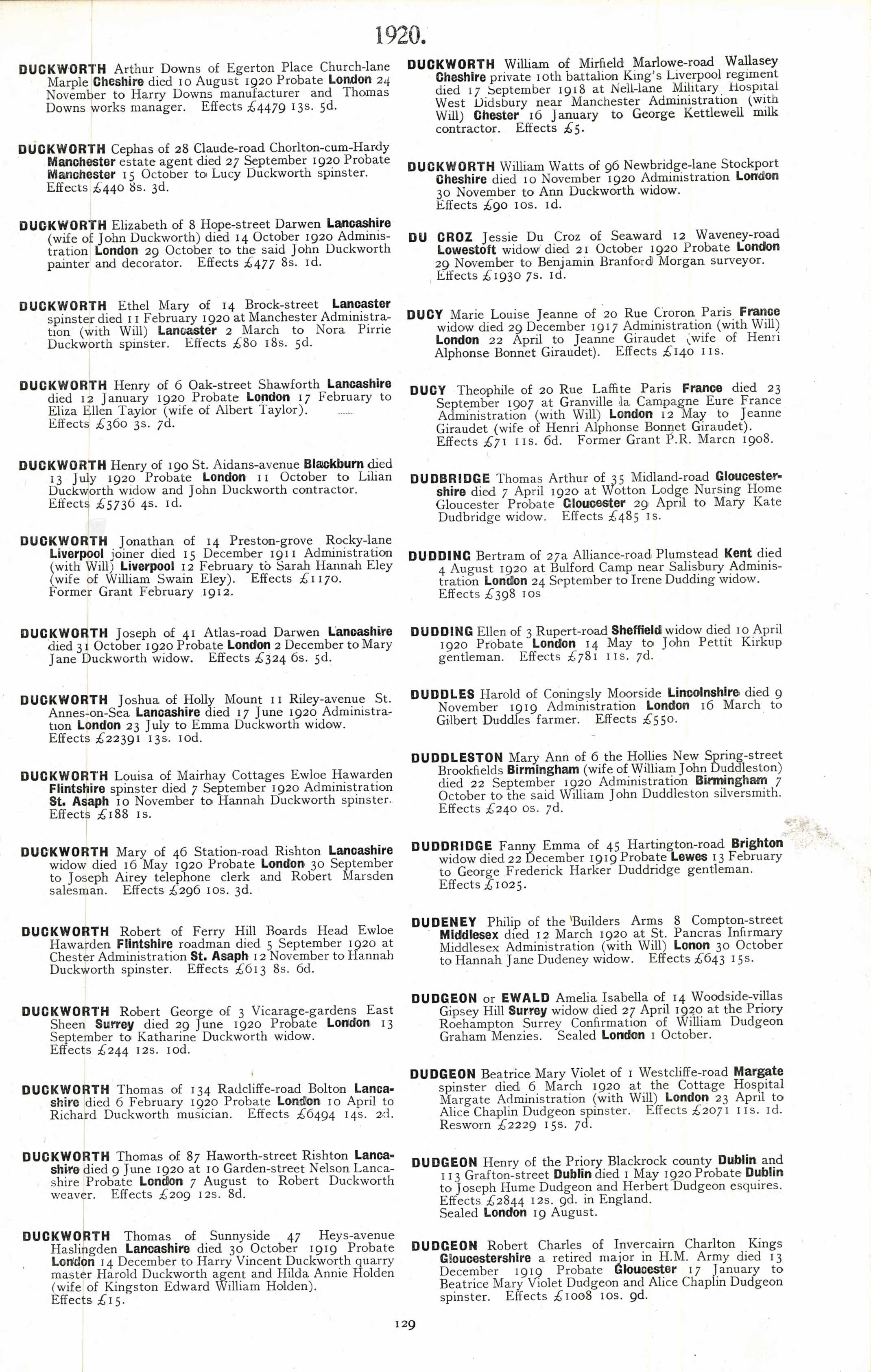 Death of Thomas Arthur Dudbridge; probate 29 Apr 1920, Gloucester
