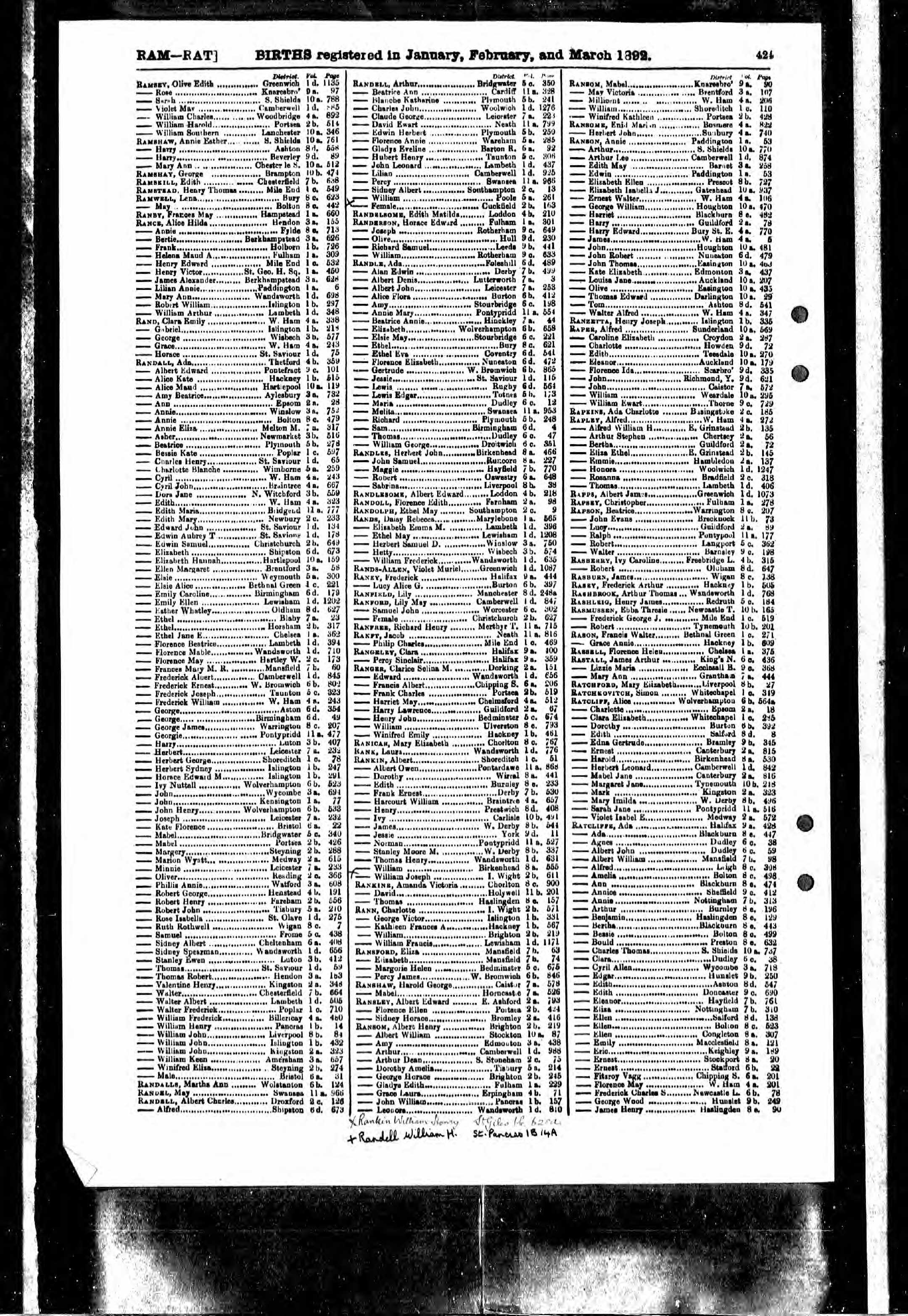 Birth of Blanche Katherine Randell