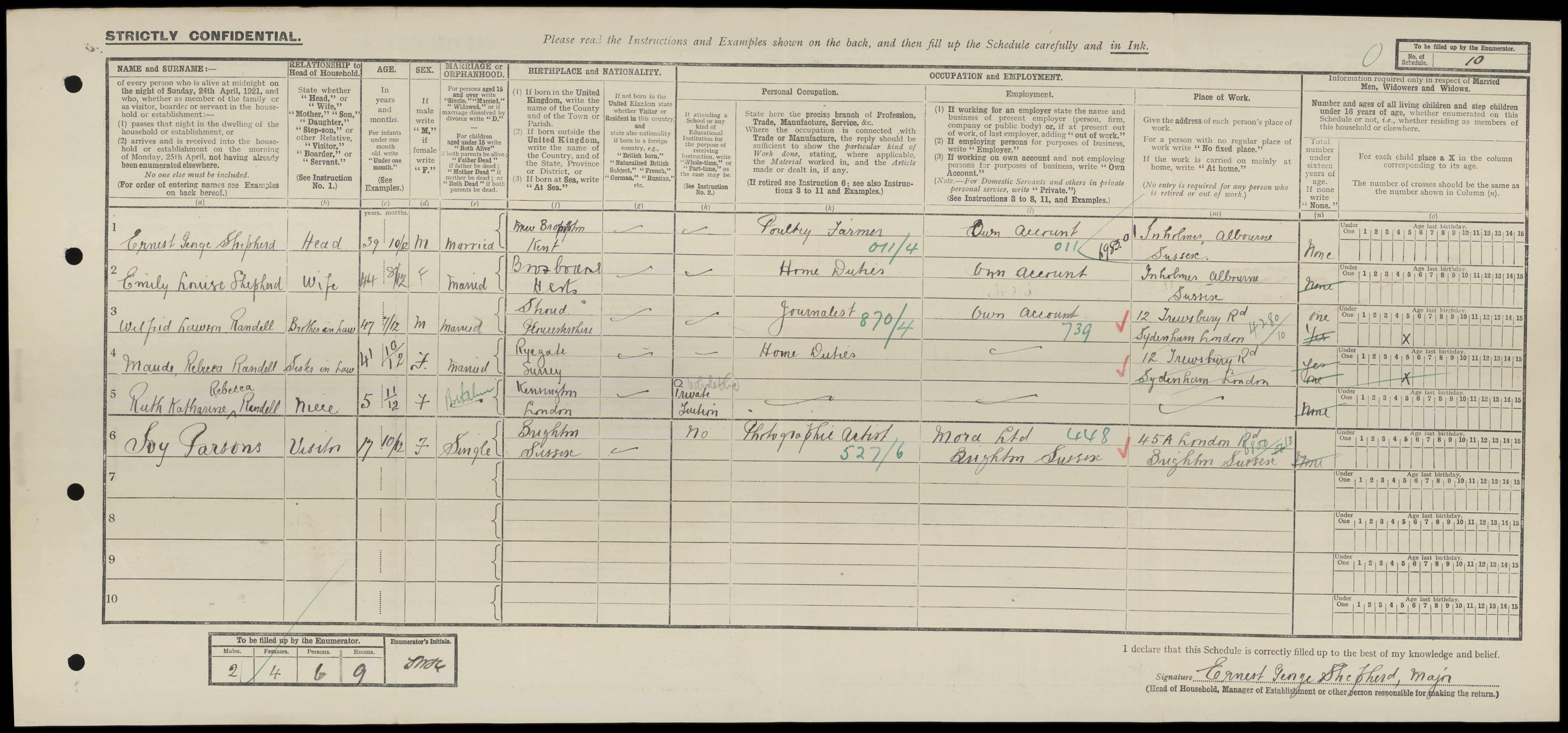 - 1921 Census - Wilfrid Lawson Randell (Journalist) with wife Maud, daughter Ruth, living with in-laws Major Shepherd