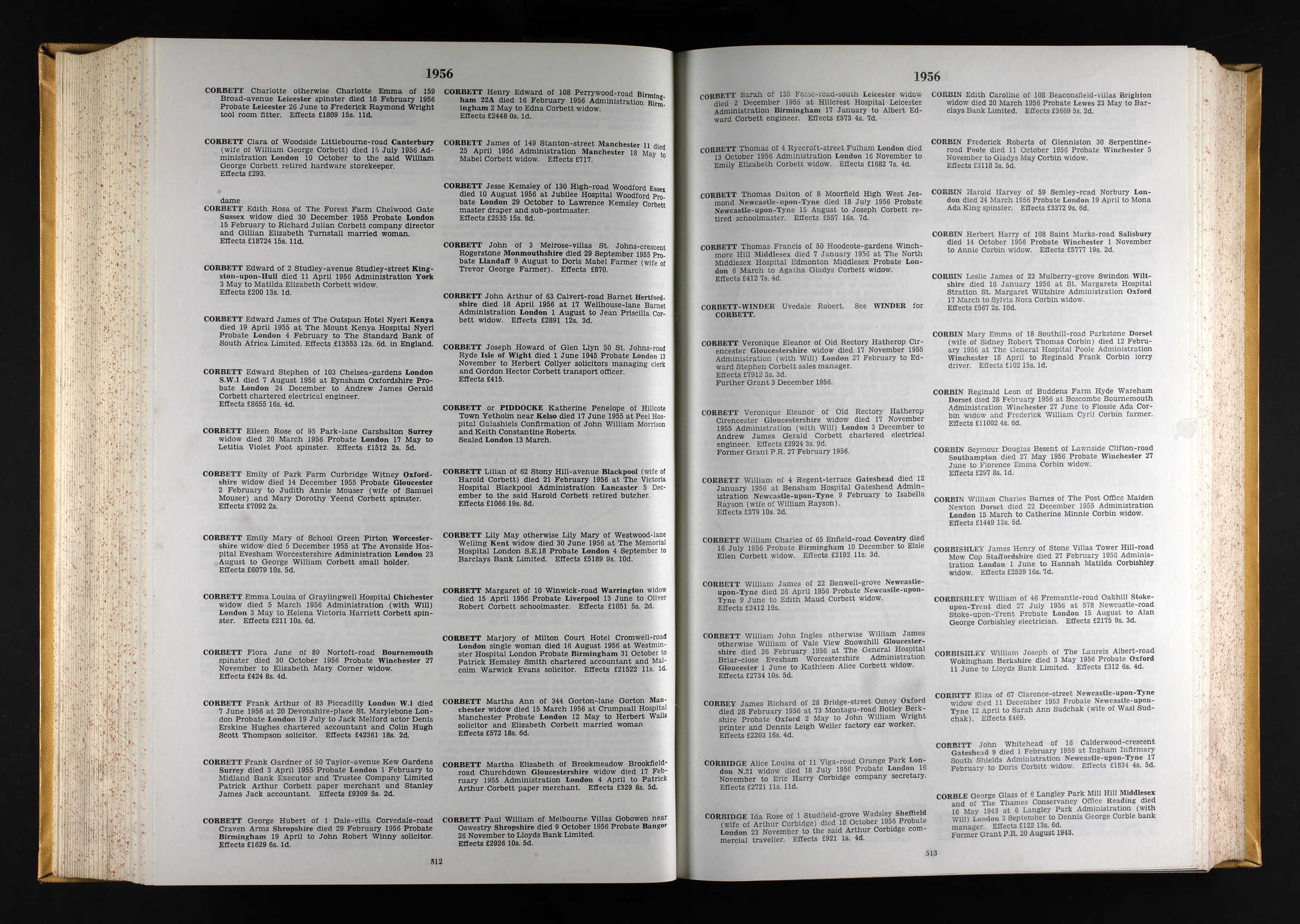 Probate for Edward James Corbett; Probate - London, 4 Feb 1956; Death 19 Apr 1955, Kenya