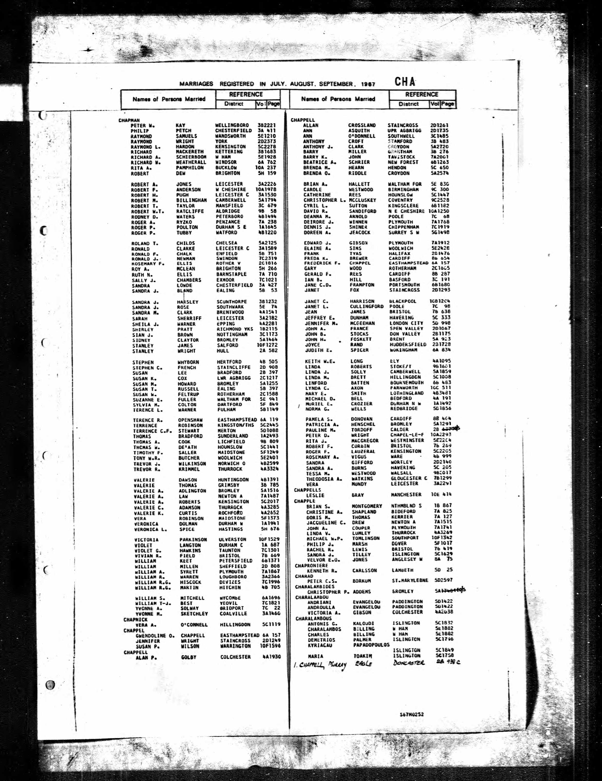 Marriage of Ian B Chappell and Lesley S. Hill; Basford; Volume 3c, Page 191