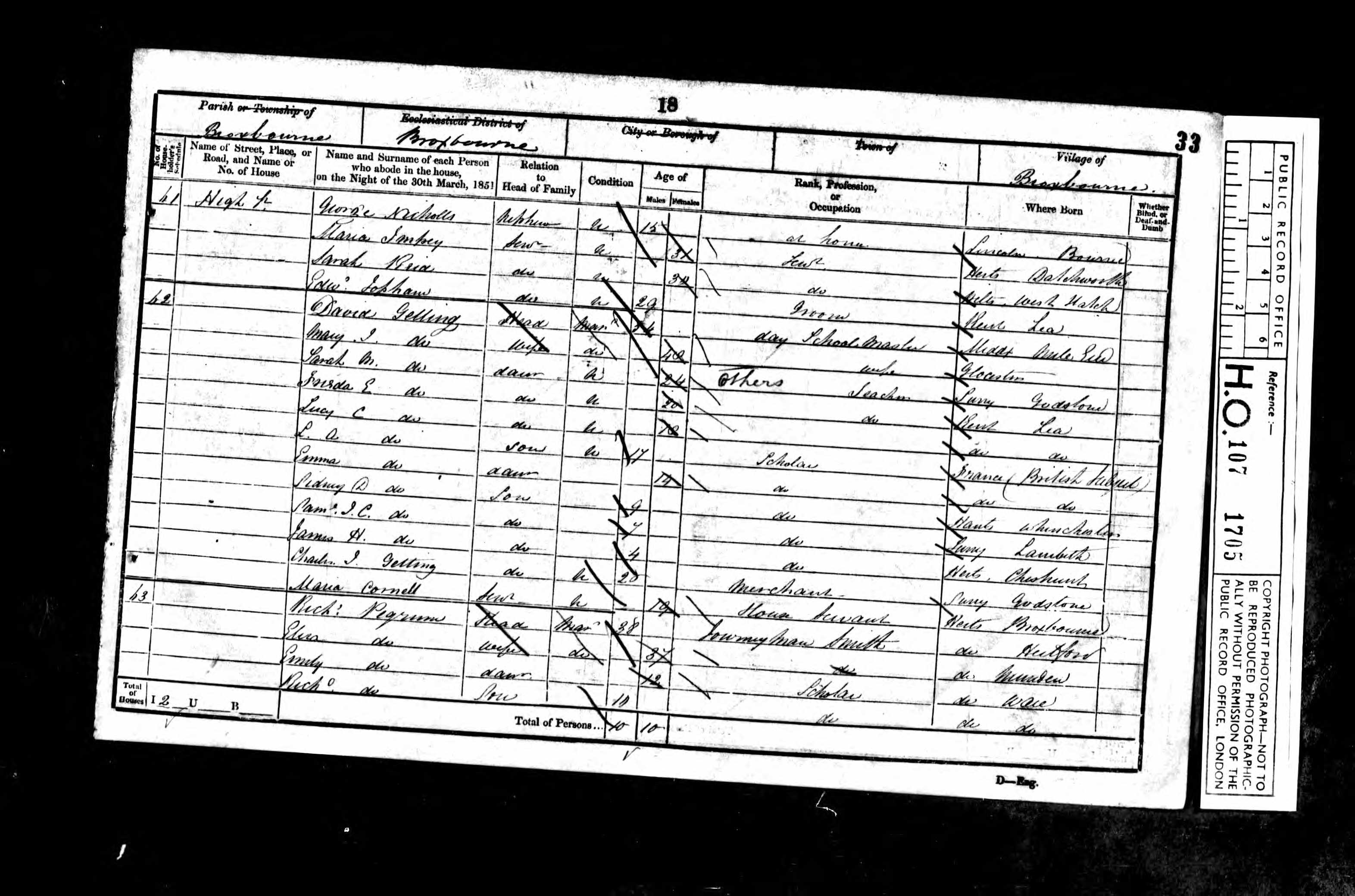 1851 Census - Richard Pegram, wife Elizabeth, daughter Emily and 5 other children; Broxbourne, ED2, Household Schedule 63, Piece 1705, Polio 33, Page 18