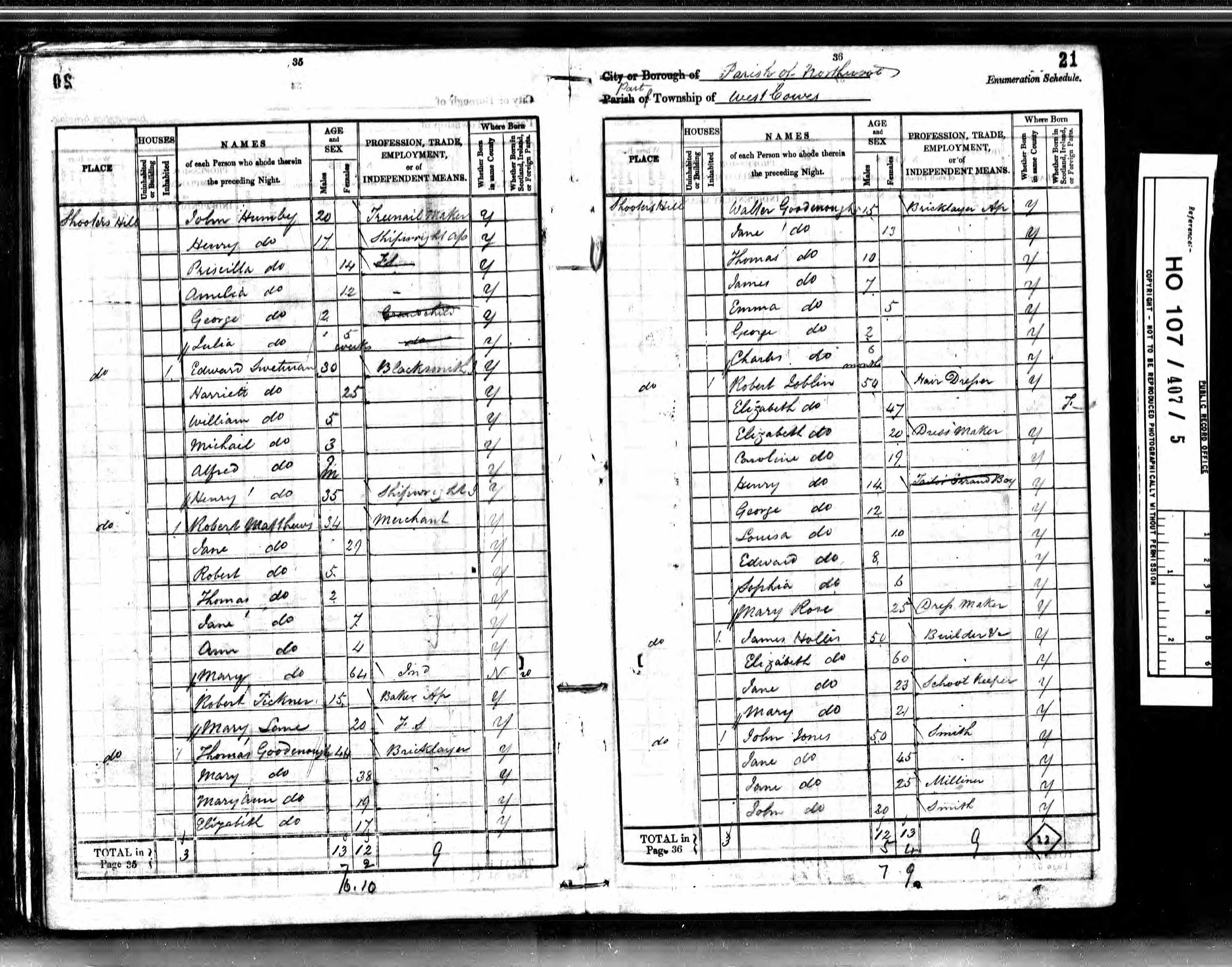 1841 Census - James Hollis (Builder), with wife Elizabeth, daughters Jane and Mary