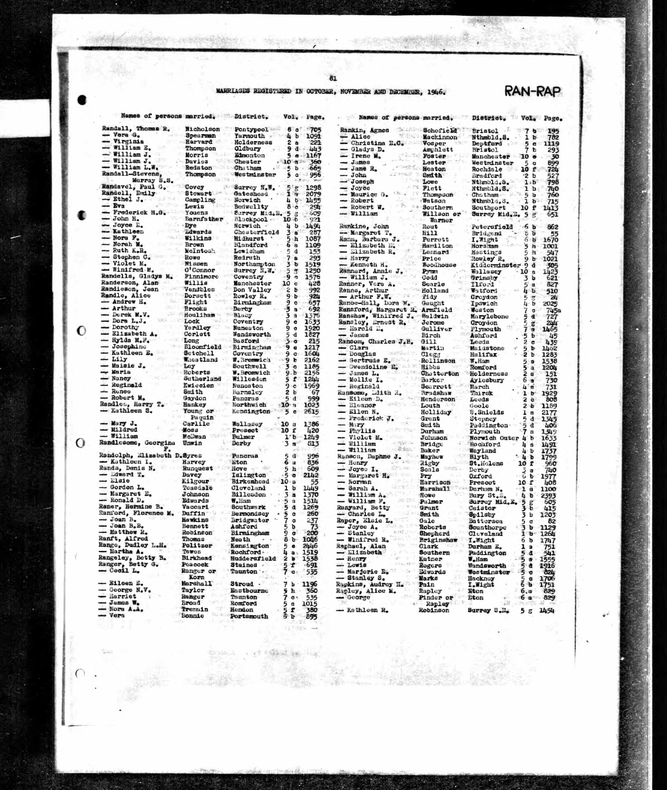 Marriage of Eric Malcolm McIntosh and Ruth Katherine Rebecca Randell: Lewisham, London; Volume 5d Page 153