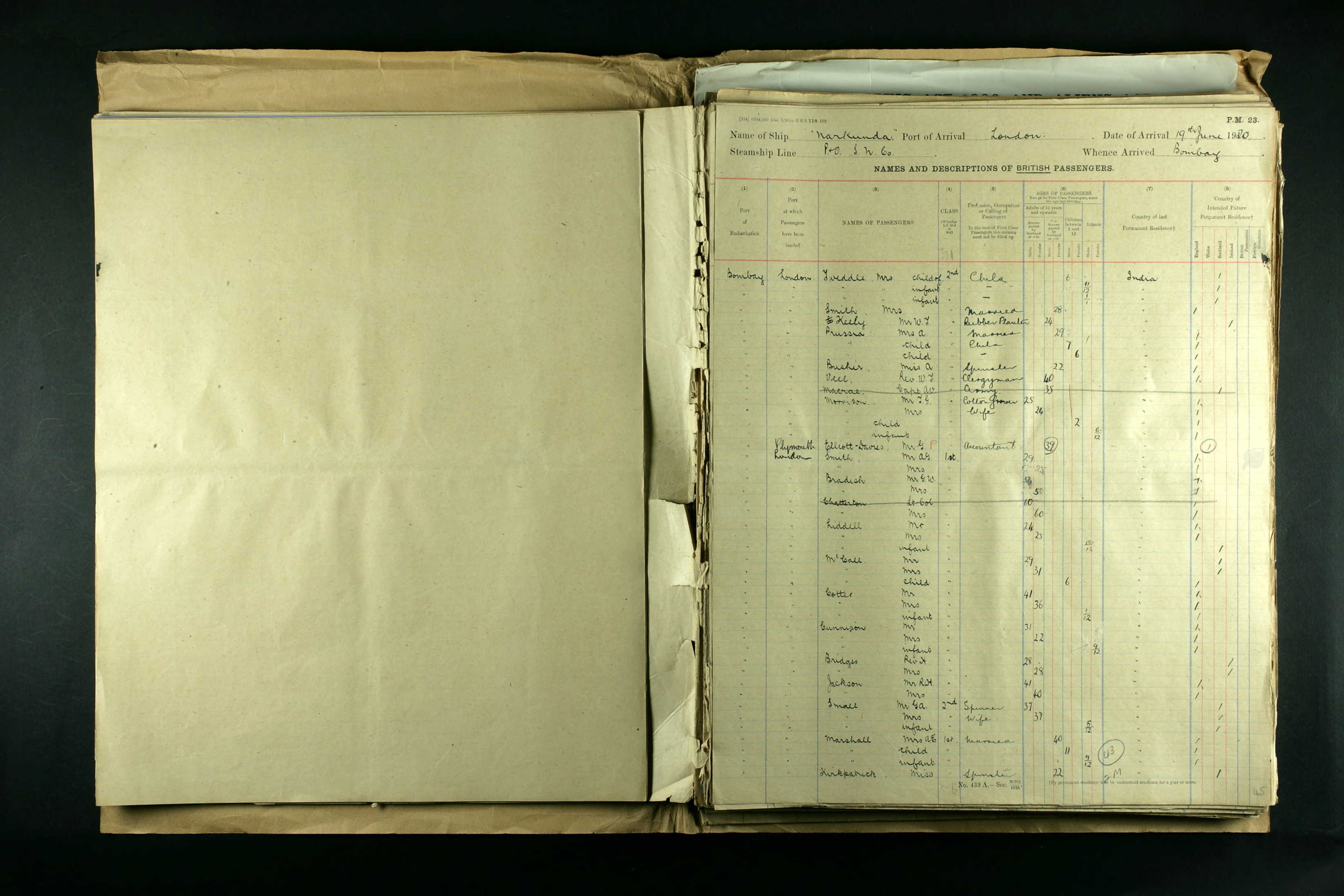 Arrival of Sarah Adelaide McIntosh and twins; from Bombay on SS Narkunda, P&O; Official number 142496