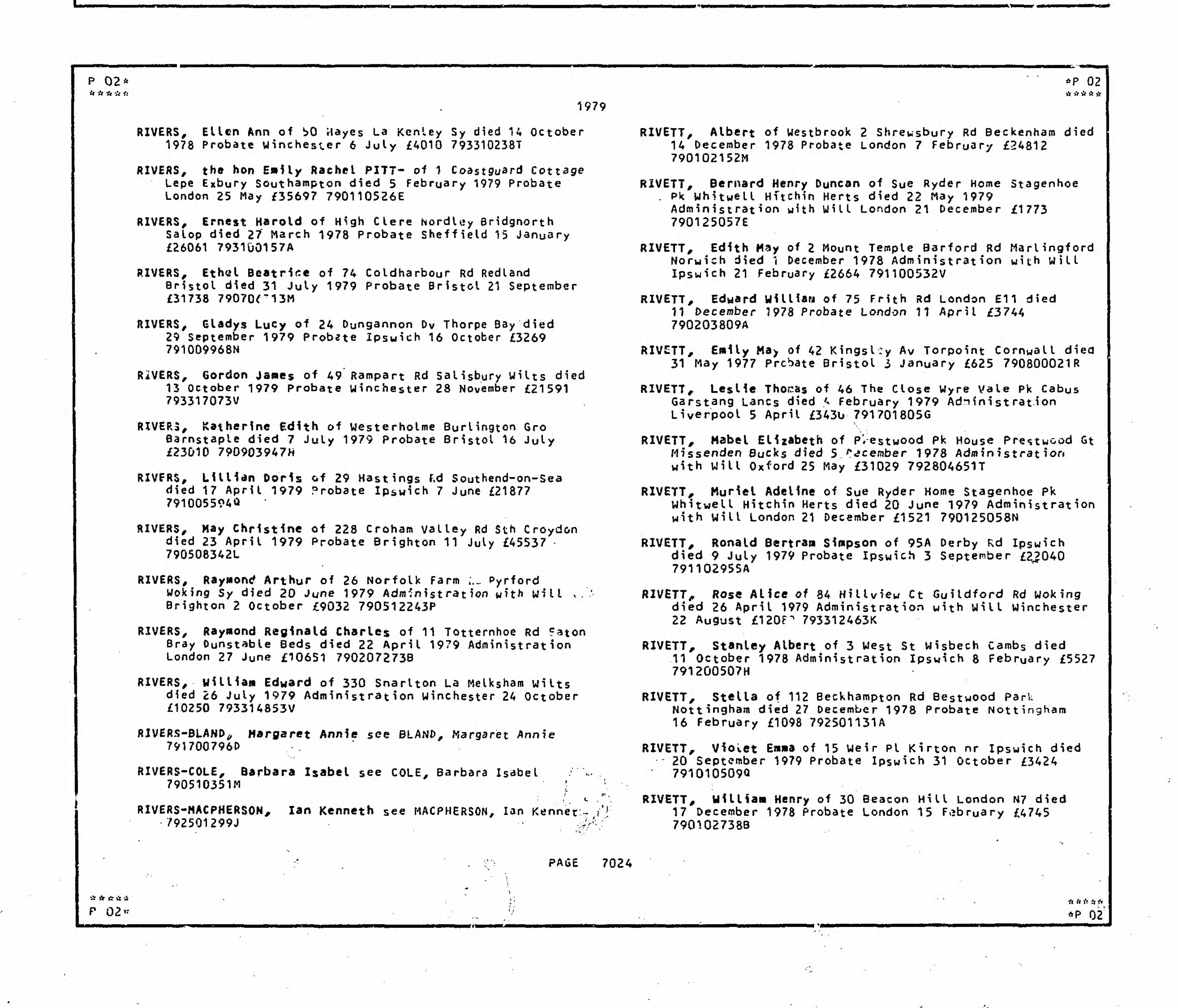 Death of Bernard Henry Duncan Rivett; Probate London 21 December 1979
