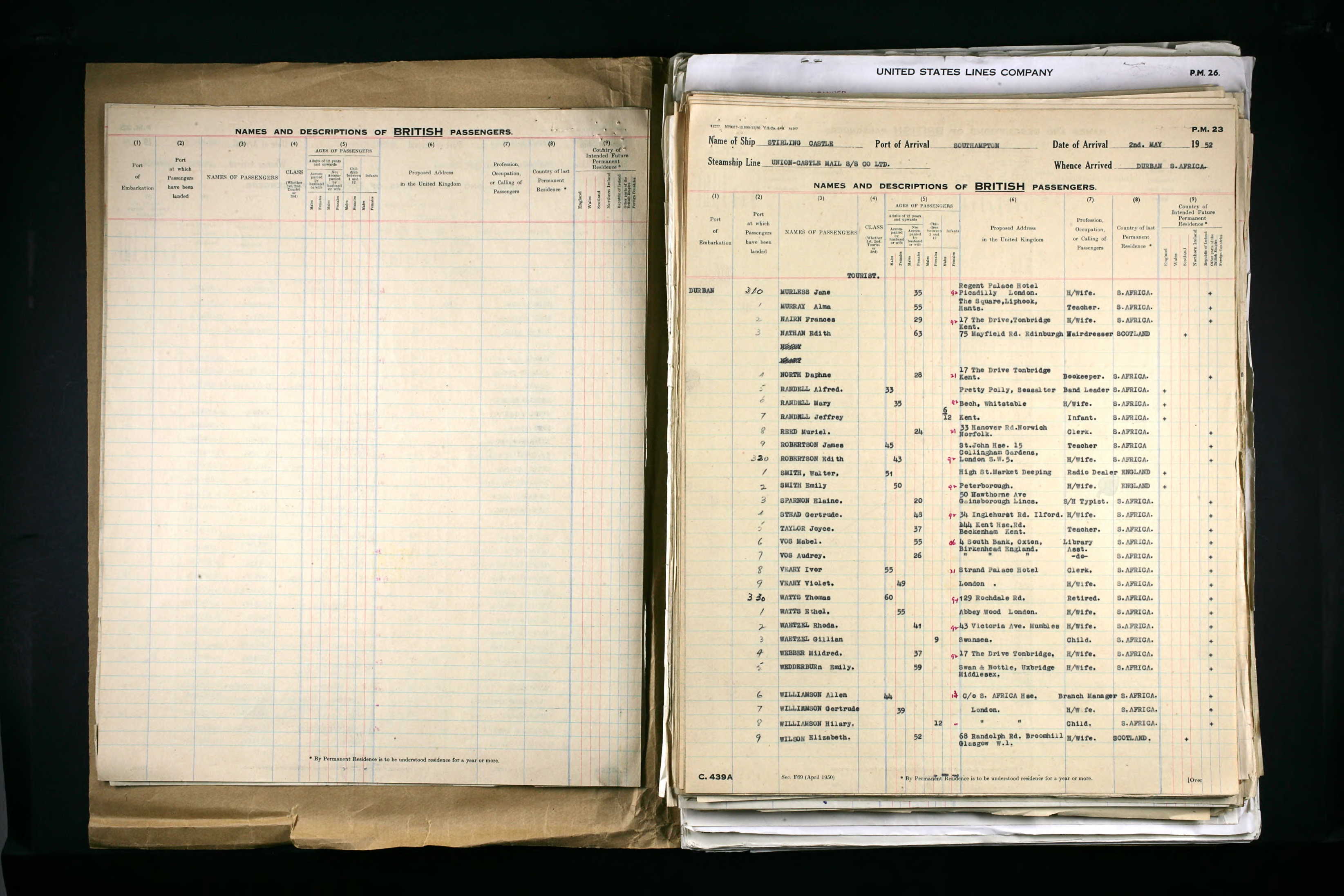 Alfred Hollis Randell with wife Mary and son Jeffrey Durban to Southampton 1952