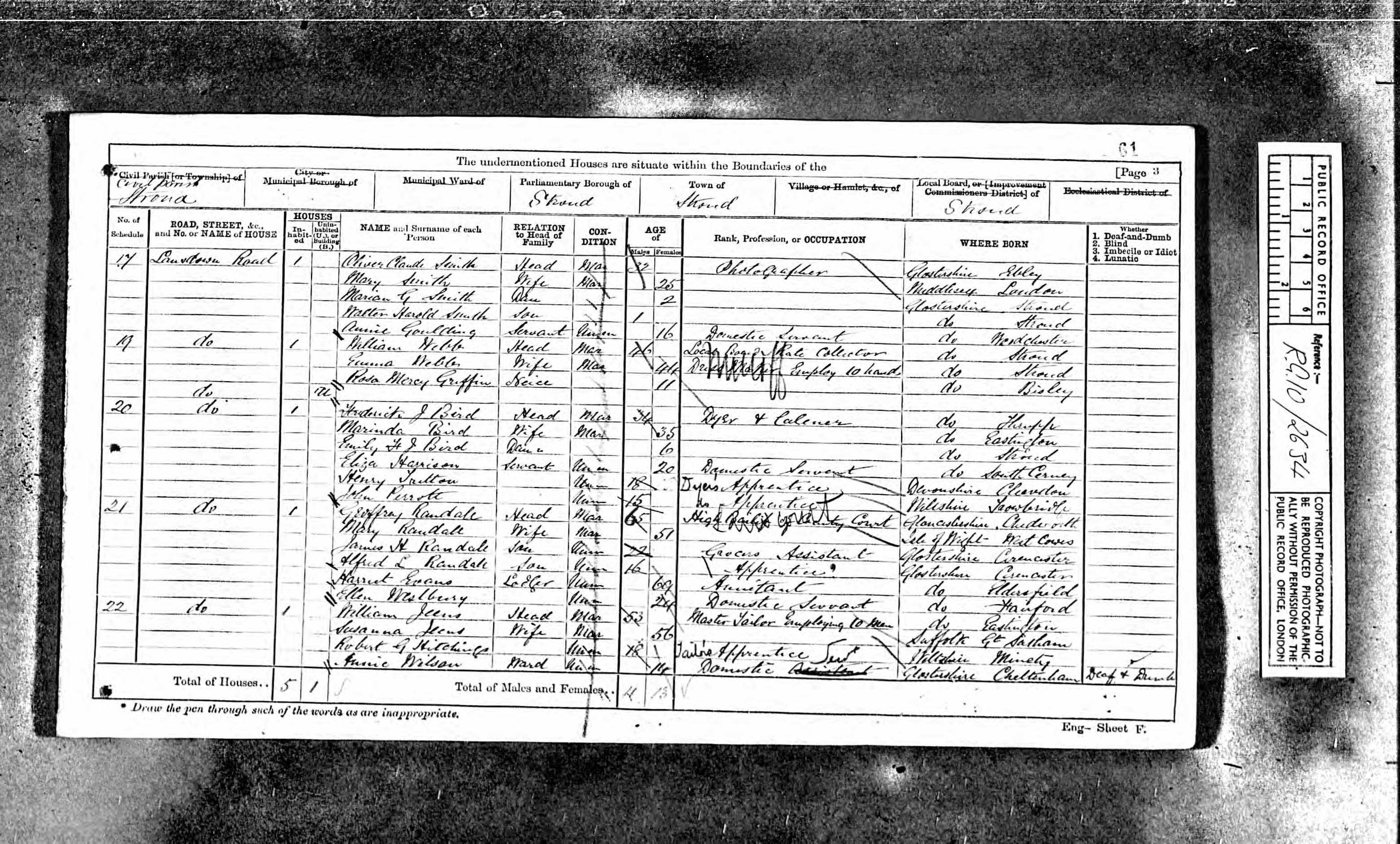 1871 Census - Alfred L Randell (Apprentice), father Geoffrey, mother Mary and brother