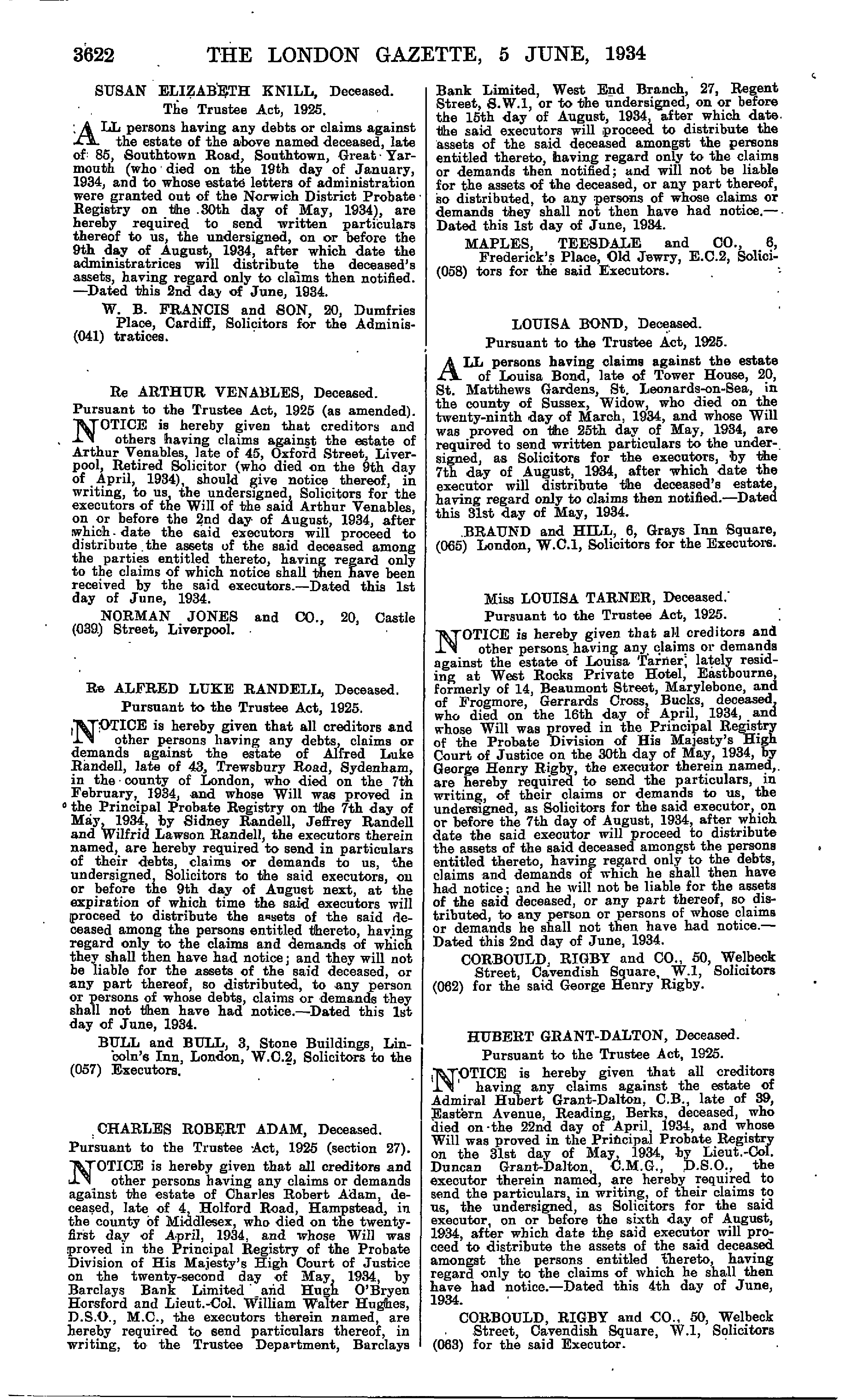 Death of Alfred Luke Randell: London Gazette Issue 34057