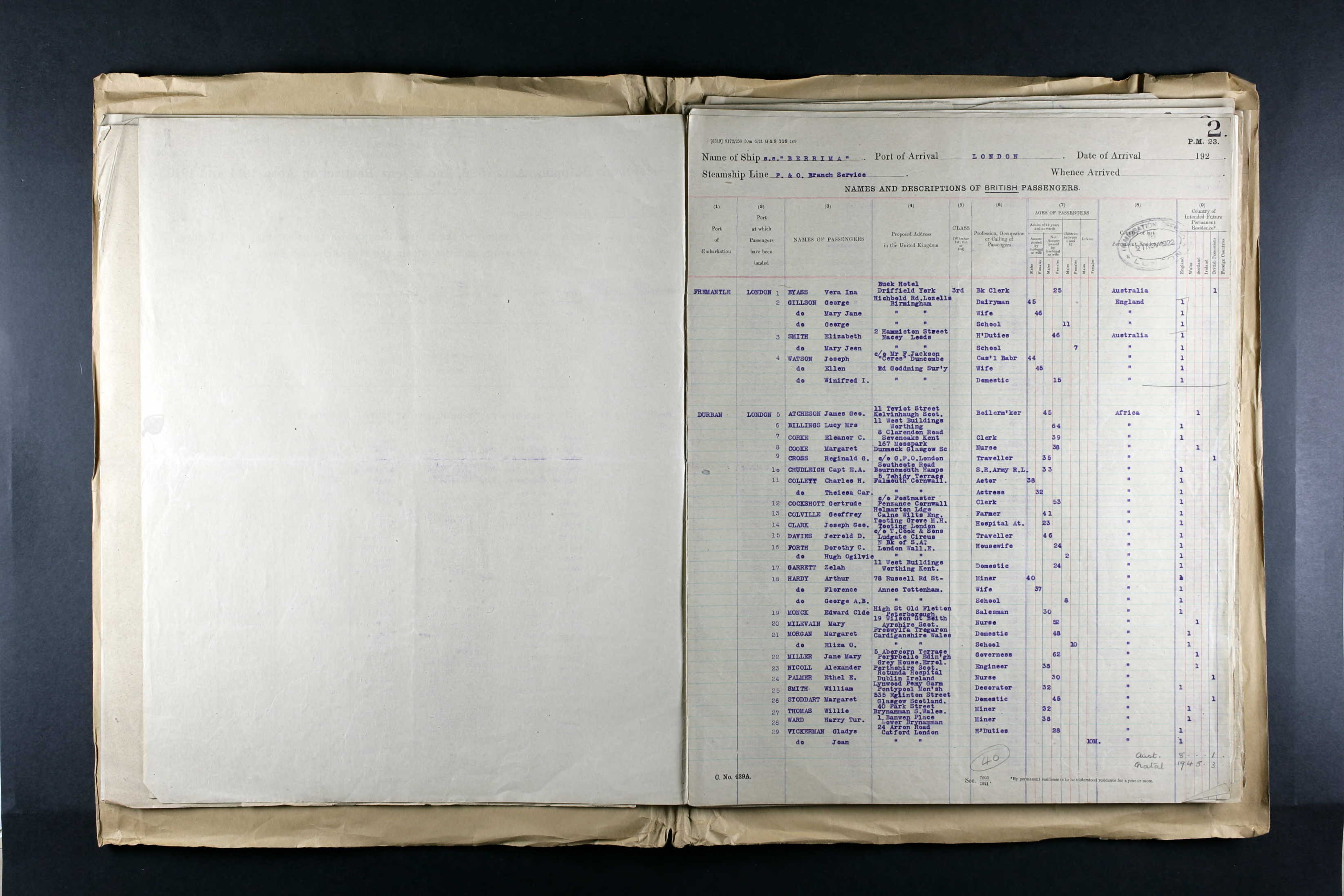 Dorothy Clare Rivett arrived from Durban, South Africa on the SS Berima, P&O S.N.Co.